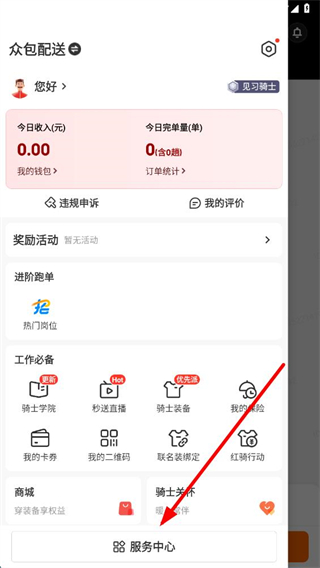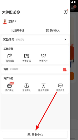 2、在功能列表中点击服务中心选项,进入服务中心页面。