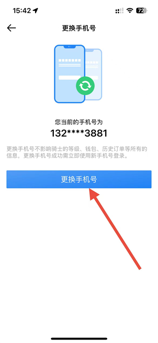 4、在更换手机号页面,点击更换手机号按钮,按照提示操作即可完成手机号更换。