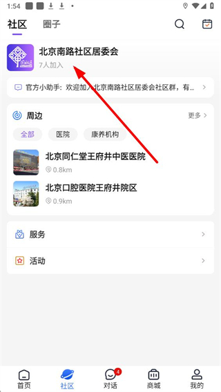 2、在社区页面,点击当前社区名称,进入社区详情页面。