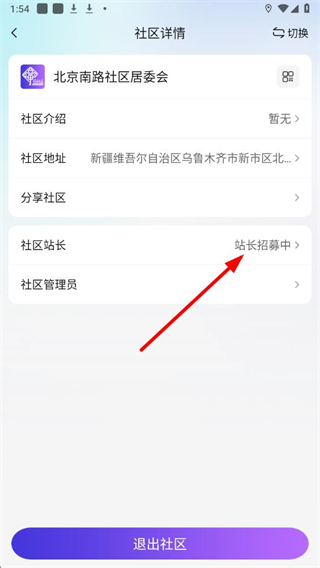 3、在社区详情页面,找到社区站长选项并点击,进入站长招募页面。