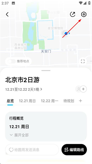 4、在行程页面点击设置按钮,进入行程设置详情页。