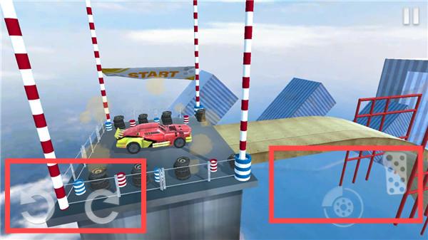 3、游戏中,利用左下角的转向按钮控制车辆方向,右下角的油门按钮控制车辆前进,在赛道上完成特技动作,顺利通过关卡。