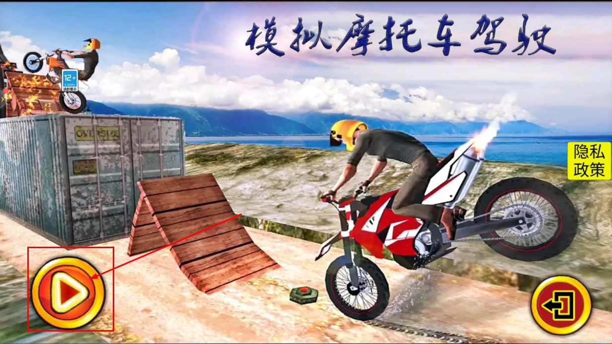1、点击带有三角形图标的按钮,可进入【模拟摩托车驾驶】游戏。