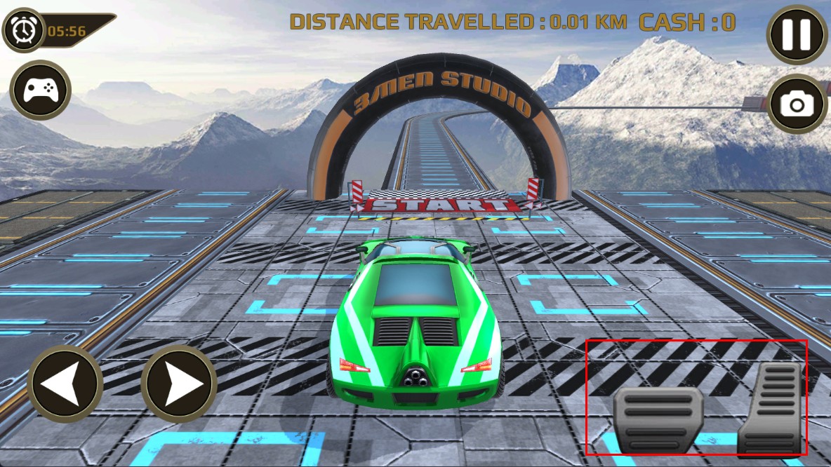 2、在驾驶界面,按右侧油门键加速,让车辆在特技轨道前进。